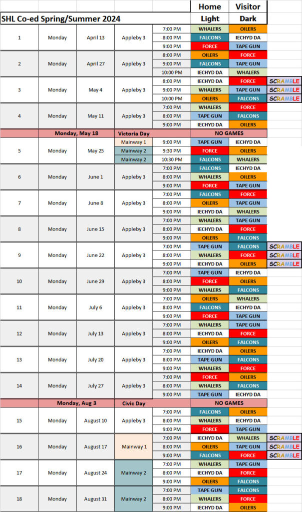 Summer 2026 Schedule